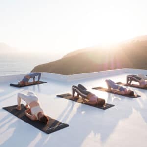 The Ajna outdoor space is our second rooftop, offering more privacy, tucked away to the side of Aegialis. Overlooking Nikouria island, Levrossos beach and Aegiali Bay, the Ajna rooftop provides a wonderful experience of connecting with nature during your practice. It is an ideal outdoor space for yoga and meditation practices and a key spot to watch the sunset from. Ajna provides a peaceful environment for all practices with serene energy as you are surrounded by the natural beauty of the island.