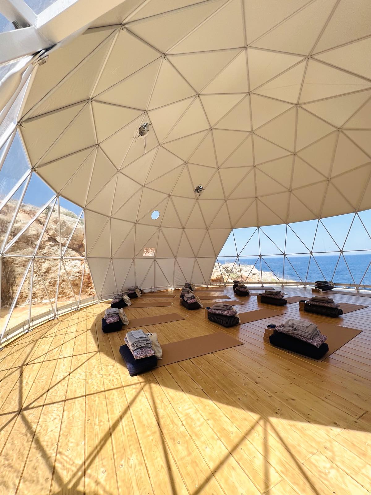 The Sea Rock is the latest concept by Aegialis Hotel & Spa, a beautiful private villa located footsteps from the sea and a short walk away from the quaint town of Aegiali Bay. Wake up to breathtaking views of the Big Blue, take a dip in the private pool and enjoy the good energy of the Amorgian sun. The Sea Rock offers privacy and quiet, a space where you can really allow yourself to be free, to relax, recharge and reconnect with yourself. The yoga shala is a futuristic geodesic dome (100 square meters) fully equipped that has been custom made on the property, spacious with plenty of light and sea view.